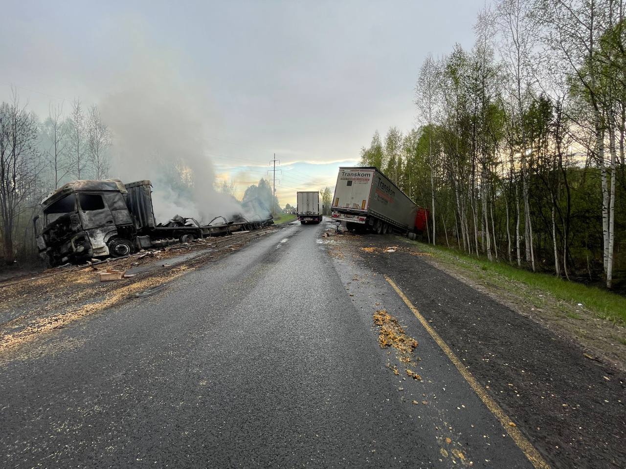 В Управлении ГИБДД по Кировской области рассказали о тройном ДТП, которое произошло в Котельничском районе на 478-ом километре федеральной автодороги «Кострома-Шарья-Киров-Пермь». В ходе аварии столкнулись 2 большегруза и одна "Газель".