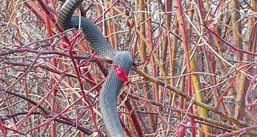 Фото сообщества "ПОДСЛУШАНО | КИРОВО-ЧЕПЕЦК"В комментариях поделились фото другой змеи. 19 апреля, на набережной города удалось встретить ужа. Змея висела на кустах около пешеходной дорожки.