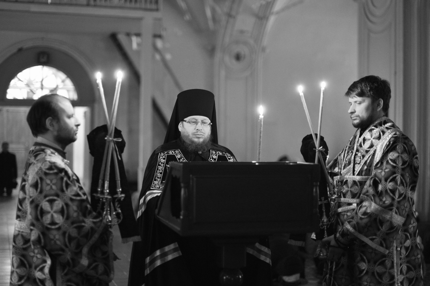 За богослужением молились священнослужители и прихожане собора. Песнопения повечерия и канона исполнило трио духовенства Яранской епархии под управлением иеромонаха Давида (Сивера).
