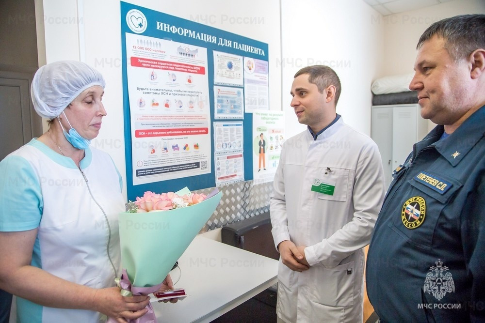Награду женщине вручили заместитель начальника Главного управления МЧС России по Кировской области Сергей Плетенев и его коллеги. Также медсестру поздравили сотрудники центральной районной больницы, где она работает.