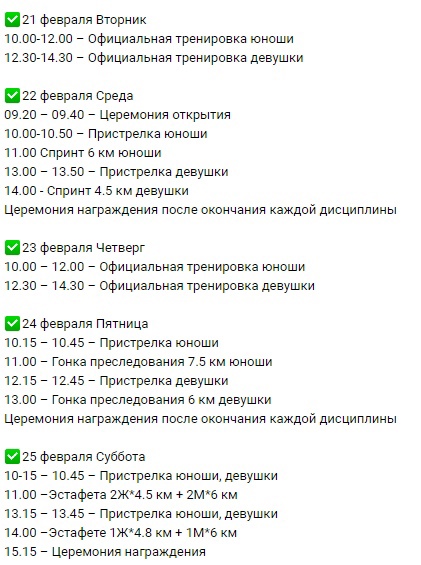 Что входит в программу грядущих соревнований: