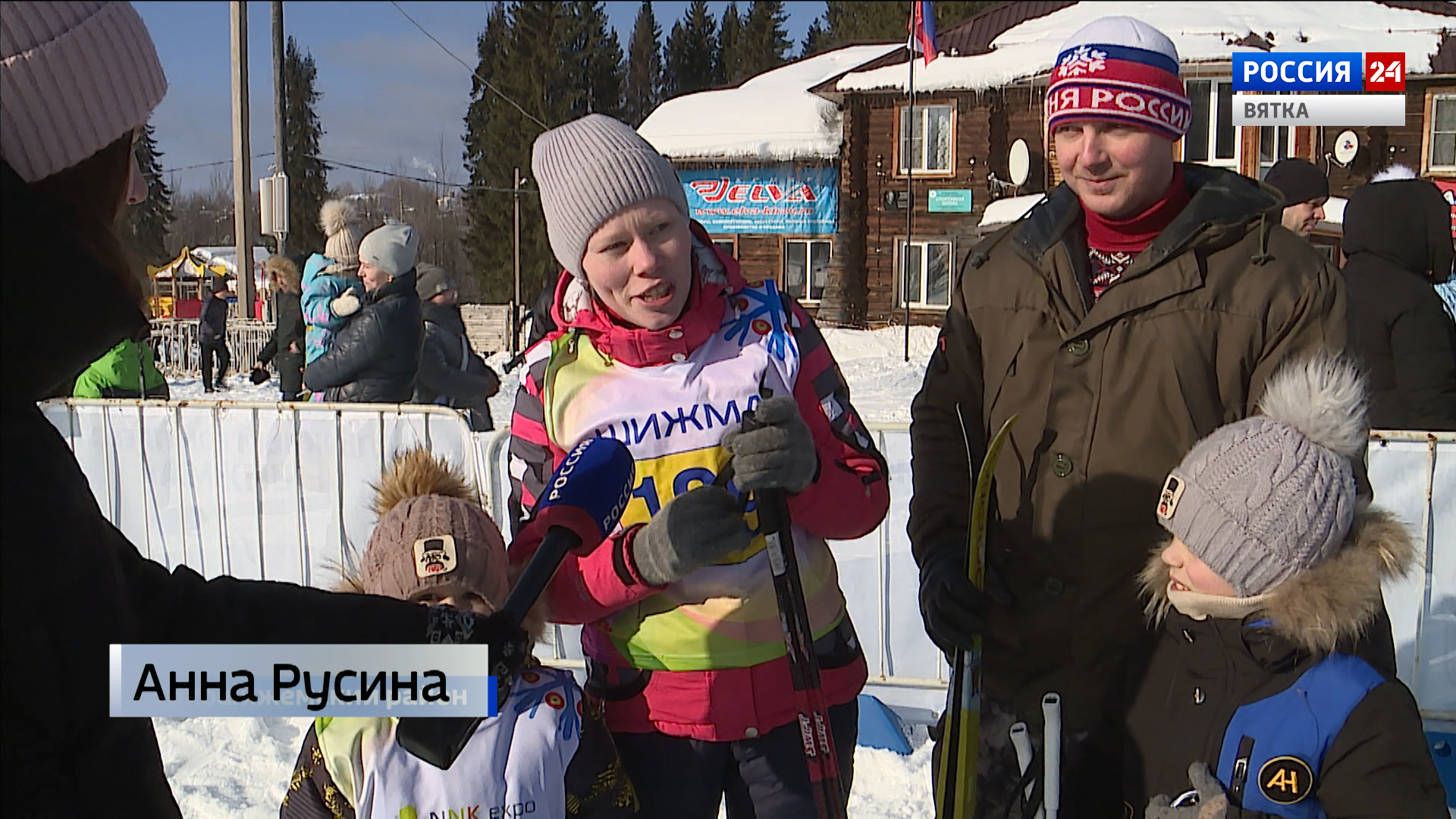 На стадионе Шижма открывают праздник самые юные участники. Они еще не совсем уверенно стоят на лыжах. Падают, но встают и бегут вперед. Семья Русиных каждый год принимает участие в Дне зимних видов спорта. Сегодня особенно волнительно, мама спустя 8 лет, решила вновь встать на лыжи.