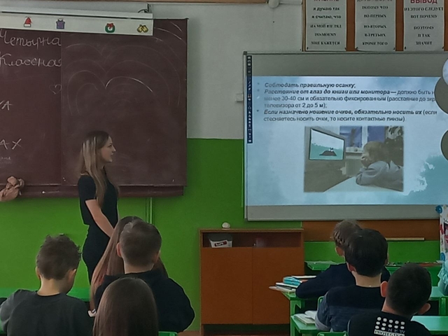 А Морозова Анастасия провела занятие с учениками 4"А" класса по профилактике нарушений зрения.