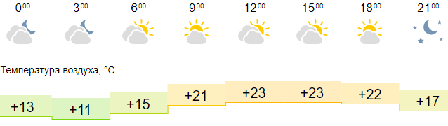В течение дня в Кирово-Чепецке будет пасмурно, моментами к жителям города может выйти солнце. Осадков не ожидается. Ночная температура воздуха составит от +11 до +13 градусов, утром потеплеет +21 градуса. К обеду температура воздуха поднимется до отметки +23 градусов. Вечером синоптики прогнозируют небольшое похолодание до +17 градусов. Ветер подует с юга, востока и юго-востока со скоростью до шести метров в секунду.