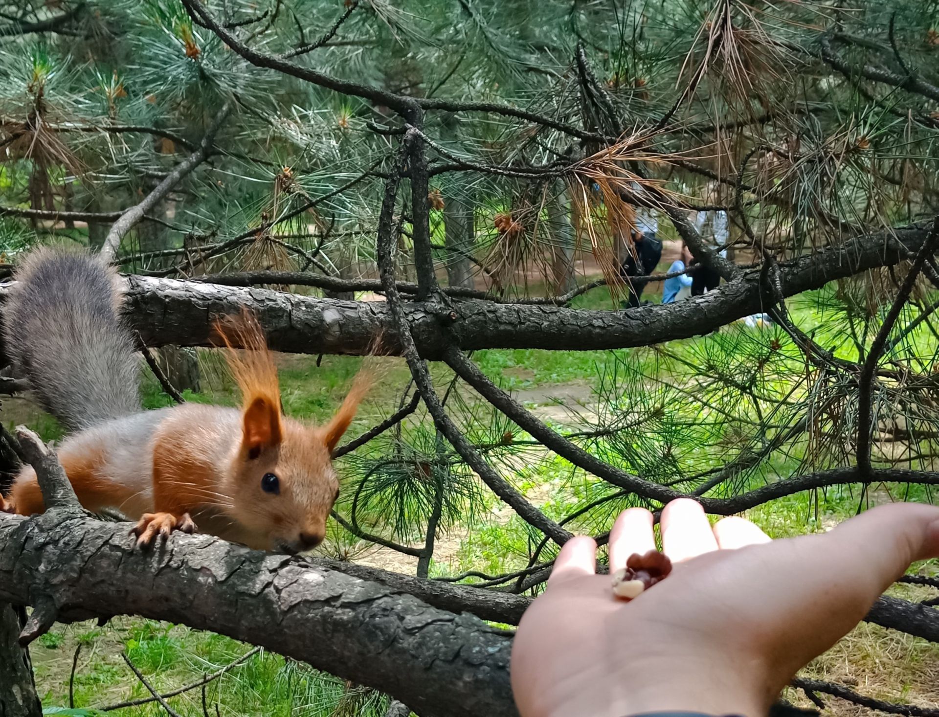А лучше, чтобы избежать неприятных последствий, не кормить животных с рук. Белки летом едят зелень, но орехи и семечки — это жирная пища, которая им в этот сезон не нужна в рационе.