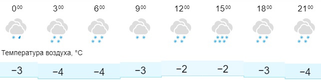 В Кирово-Чепецке ожидается от -2 до -4 градусов ртутного столба. День выдастся пасмурным, с 0:00 до 21:00 в городе будет идти снег. Пик снегопада прогнозируется на 15:00. Ночная температура воздуха – от -3 до -4 градусов, к утру температура не изменится. Днем в Кирово-Чепецке температура воздуха составит -2 градуса. К вечеру вновь ожидается от -3 до -4 градусов.