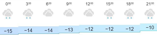 В Кирове будет пасмурно. Ночью, днем и вечером прогнозируется небольшой снег. Ночная температура воздуха составит от -14 до -15 градусов, к утру столбик термометра останется на той же отметке. Днем температура воздуха в городе составит -12 градусов, к вечеру столбик термометра упадет до отметки -10 градусов. Ветер подует с севера, северо-востока и северо-запада со скоростью от 3 до 12 метров в секунду. Порывы ветра – от 10 до 14 метров в секунду.