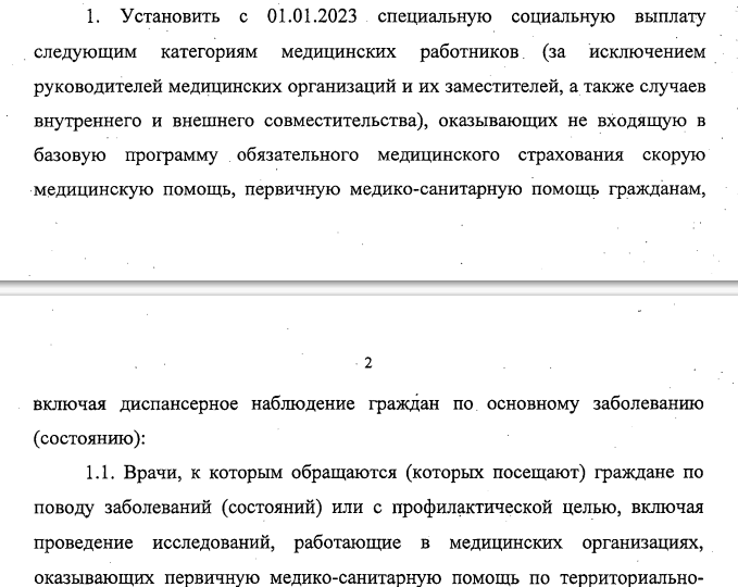 Отметим, что соцвыплаты не распространяются на руководителей медорганизаций и их заместителей, а также на случаи внутреннего и внешнего совместительства.
