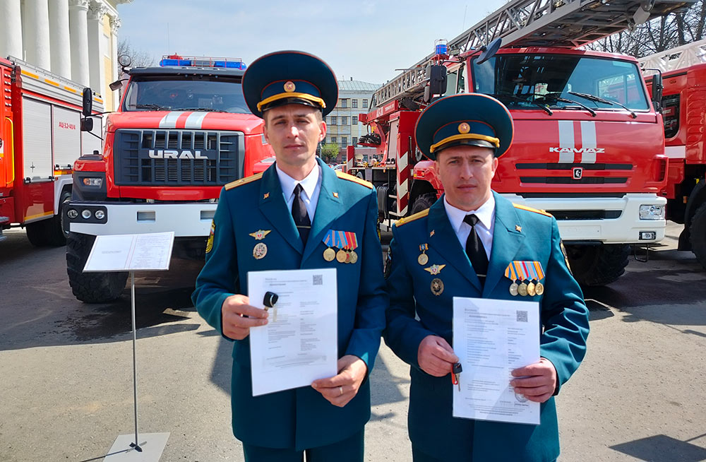 В ходе церемонии губернатор Александр Соколов вручил пожарным ключи от новой спецтехники. Автопарк слободских огнеборцев пополнился двумя машинами – пожарной автоцистерной на базе «Урала» и пожарной автолестницей на базе «Камаза».