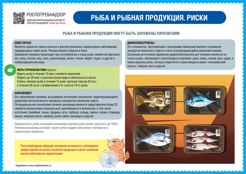 Человек может заглотить паразита или его личинки, даже не съев зараженную рыбу, а просто использовав нож, разделочную доску или тарелку, на которой эта рыба лежала.