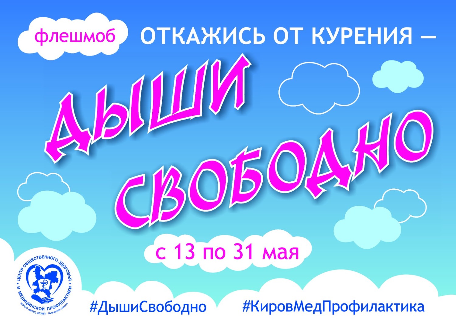 В честь Всемирного дня без табака, который отмечается ежегодно 31 мая, КОГБУЗ "Вятскополянская центральная районная больница" присоединяется к флешмобу «Откажись от курения — дыши свободно». Он продлится с 13 мая до конца месяца.