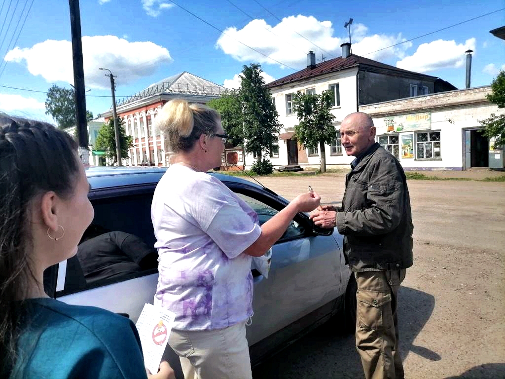 Нолинская детская библиотека-филиал провела акцию «Откажись от сигареты». Волонтёры с сотрудниками библиотеки вышли на улицы города, предлагая вместо сигареты конфеты-леденцы и раздавая закладки о вреде курения.