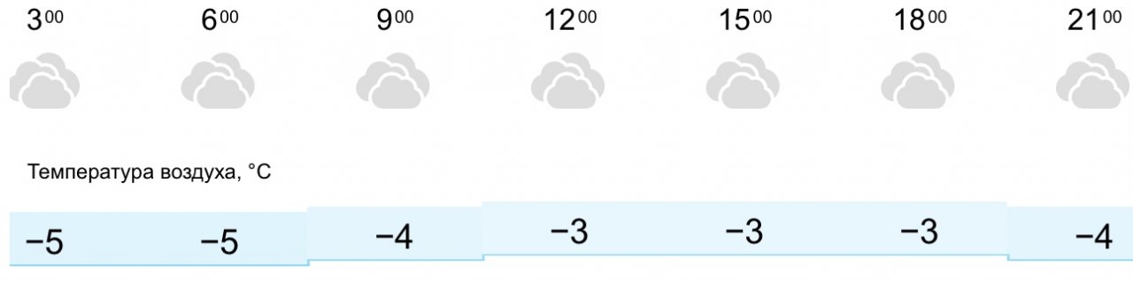 В Кирово-Чепецке будет пасмурно, осадков не прогнозируется. Температура воздуха будет колебаться от -3 до -5 градусов. Ночью в Кирово-Чепецке температура воздуха составит -5 градусов, к утру отметка на столбике термометра достигнет -4 градусов. Дневная температура воздуха в городе составит -3 градуса, к вечеру на улице вновь будет -4.