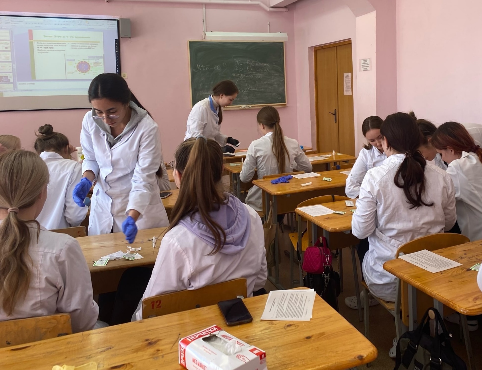 На занятии со студентами обсуждались вопросы важности дотестового консультирования, порядок проведения тестирования и правила постановки экспресс-тестов. Будущие медицинские работники смогли самостоятельно провести процедуру постановки теста, начиная от подготовки рабочего места до чтения результатов теста.