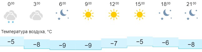 В Кирове прогнозируются пасмурная погода. Температура воздуха будет колебаться от -5 до -9 градусов. Ночью температура воздуха в городе составит от -5 до -8, ожидается снег. Утром синоптики обещают -9 градусов. Дневная температура воздуха составит от -5 до -7 градусов. Кроме того, весь день будет светить солнце. К вечеру столбик термометра опустится до -8 градусов. Ветер подует юга, севера, запада и северо-запада со скоростью до двух метров в секунду.