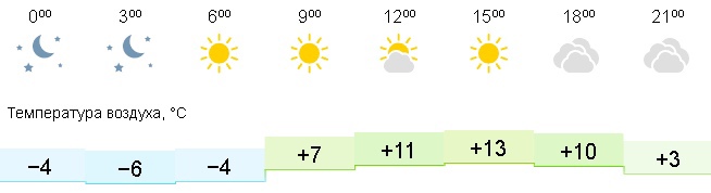 В течение дня в Кирово-Чепецке прогнозируется переменная облачность. Ночная температура воздуха составит от -4 до -6 градусов, утром потеплеет +7, будет ясно и солнечно. К обеду температура воздуха поднимется от отметки +11 градусов, к 15:00 - до +13. Вечером ожидается пасмурная погода, температура опустится до +3 градусов.