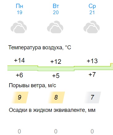 Начало рабочей неделе будет пасмурным. Портал предупреждает о дневной температуре воздуха в городе от +14 градусов Цельсия до +12 градусов Цельсия. В ночное время резких колебаний уличных температур не ожидается. Синоптики прогнозируют температуры от +5 градусов до +7 градусов. Осадки с 19 по 21 июня 2023 года в Кирово-Чепецке не ожидаются. В Управлении МЧС России по Кировской области предварительные прогнозы менее оптимистичные . Ведомство проинформировало жителей о заморозках в ночные и утренние часы. Три дня температуры воздуха и почвы будут колебаться от минус трех градусов до нулевых отметок. Метеопредупреждение объявлено на три дня по всей Кировской области. Дачникам напоминают о необходимости заранее позаботиться о сохранности будущего урожая: своевременно укрыть растения на случай "охлаждения" почвы и воздушных масс.