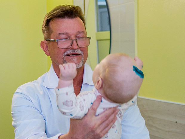 – К сожалению, черепно-мозговые травмы у детей раннего возраста, даже самые безобидные, могут вести к серьёзным осложнениям, требующим оперативного лечения. К таким патологиям относится так называемый «растущий перелом черепа» или лептоменингеальная киста, которая и была у нашего маленького пациента. В чем суть патологии – ребёнок до года имеет тонкие кости черепа толщиной буквально 1-2 миллиметра, причём они достаточно плотно связаны с твёрдой мозговой оболочкой, что предрасполагает к сочетанию травмы. В результате ушиба образуется трещина какой-то из костей черепа, и в 99% процентах случаев ломаются только кости. Но в редких случаях с травмой костей происходит травма твёрдой мозговой оболочки, когда она разрывается и её края начинают выбухать в просвет перелома, что мешает ему срастись, – рассказал лечащий врач малыша, детский нейрохирург Кировской областной детской клинической больницы Эдуард Сырчин.