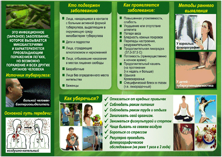 Туберкулез — инфекционное заболевание, вызываемое микобактериями туберкулеза. При туберкулезе чаще всего поражаются органы дыхания, а также мочеполовая система, периферические лимфатические узлы, кожа, глаза, кости и суставы.