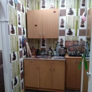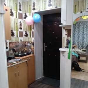 Продаю малосемейку. Пластиковые окна, ламинат в комнате, натяжной потолок, водонагреватель в санузле. Из мебели остаётся стенка в комнате, шкаф в прихожей и частично кухонные шкафы.
