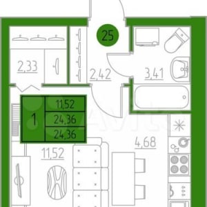 - Общая площадь: 24.4 м²