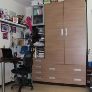 ОСТАЕТСЯ ВСЯ МЕБЕЛЬ, сконструированная дизайнером на заказ: прихожая, кухонный гарнитур, в комнате: шкаф для одежды, рабочий стол, тумбы под телевизор, столики и полки на стенах! Квартира полностью готова к заезду нового владельца!