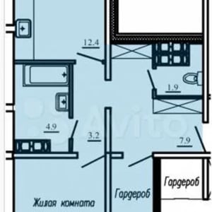 - Площадь кухни: 12.4 м²