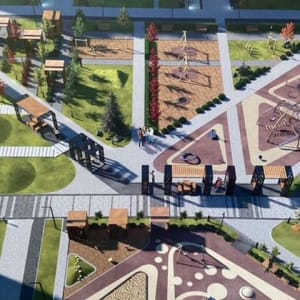 - на территории мкрн разнообразные современные детские площадки, спортивные площадки, футбольное поле, многочисленные зоны отдыха, тропа здоровья для прогулок летом и зимой, парк, пруд.