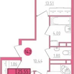 - Жилая площадь: 25.6 м²