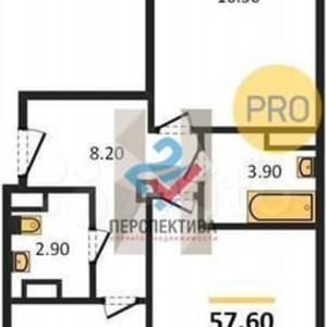 - Общая площадь: 57.6 м²