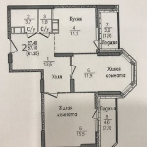 - Общая площадь: 61 м²