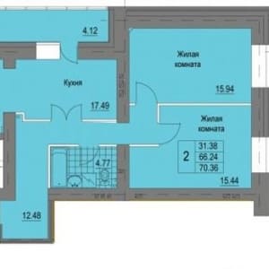 - Общая площадь: 70.4 м²