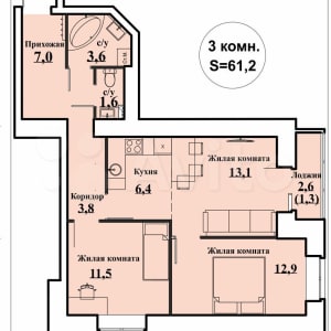 - Общая площадь: 61.2 м²