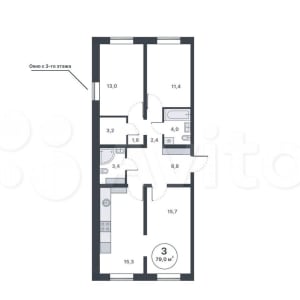 3-комнатная, 79 м² по адресу бульвар Прибрежный, д.2 Район: Первомайский. Тип дома: Панель. Жилой комплекс "РИВЕР ПАРК"