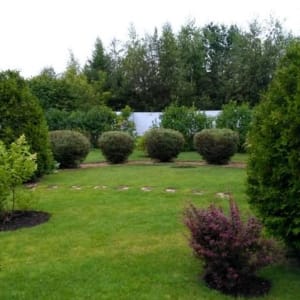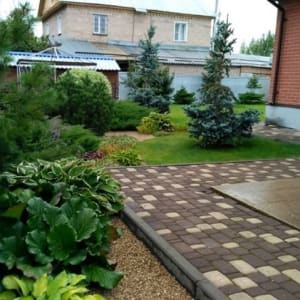 13,5 соток с полным благоустройством и законченным ландшафтным дизайном с хвойными и лиственными невысокими деревьями и ухоженным газоном и тротуарами в брусчатке.