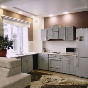 Стильные интерьеры по индивидуальному дизайну с высокими потолками: просторная кухня- гостиная, две спальни, санузел на каждом этаже, гардеробная, большой холл с удобной лестницей, погреб в цокольном этаже, бойлерная с тремя котлами (газовый, электро и твердотопливный), тёплый гараж.