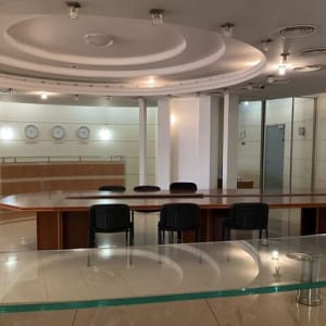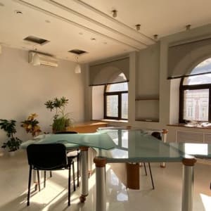 В офисе и здании сделан качественный ремонт с использованием импортных материалов: окна, двери, керамогранит, мебель. Система кондиционирования, приточная вентиляция. Офис сдается вместе с мебелью, которая присутствует на фото. В холле две стойки ресепшн, имеется кабинет руководителя с переговорной, комната отдыха, кабинет для бухгалтера и т.д. (кабинеты могут быть использованы по Вашему усмотрению).