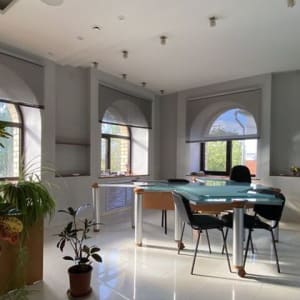 Третий этаж в отдельно стоящем здании со своим земельным участком. Площадь 296,4 кв.м. В офисе удобная и функциональная планировка: 7 отдельных кабинетов, площадью от 14 до 38 кв.м., общий холл 90 кв.м., два санузла. (см. планировку). Высота потолков 2,9 м. В каждом кабинете по несколько окон, частично панорамное остекление с видом на историческую часть города.
