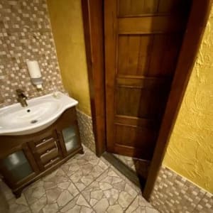 ✔ Туалет выложен кафелем => установлены приборы учёта. Новые трубы и сантехника.