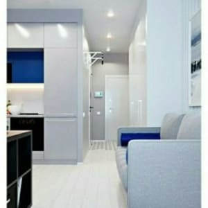 отличная стяжка, электроразводка, выровнены стены и входная дверь.Студия прямоугольная с большой ванной комнатой.