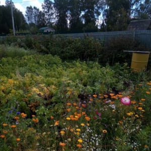 - Много насаждений(клубника, малина, крыжовник, смородина, яблоня.)